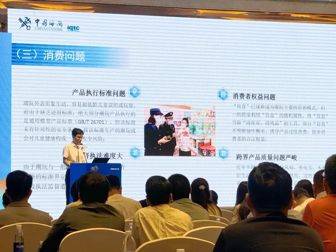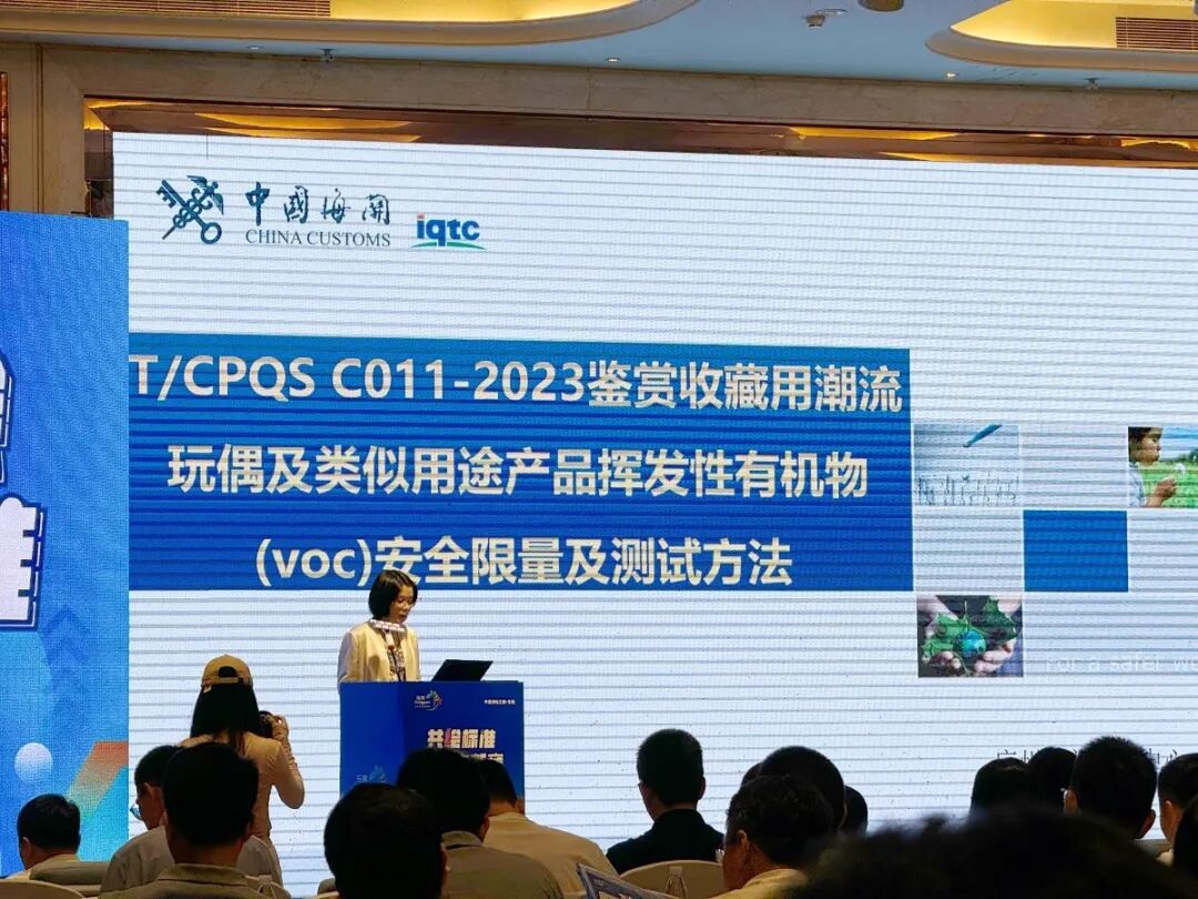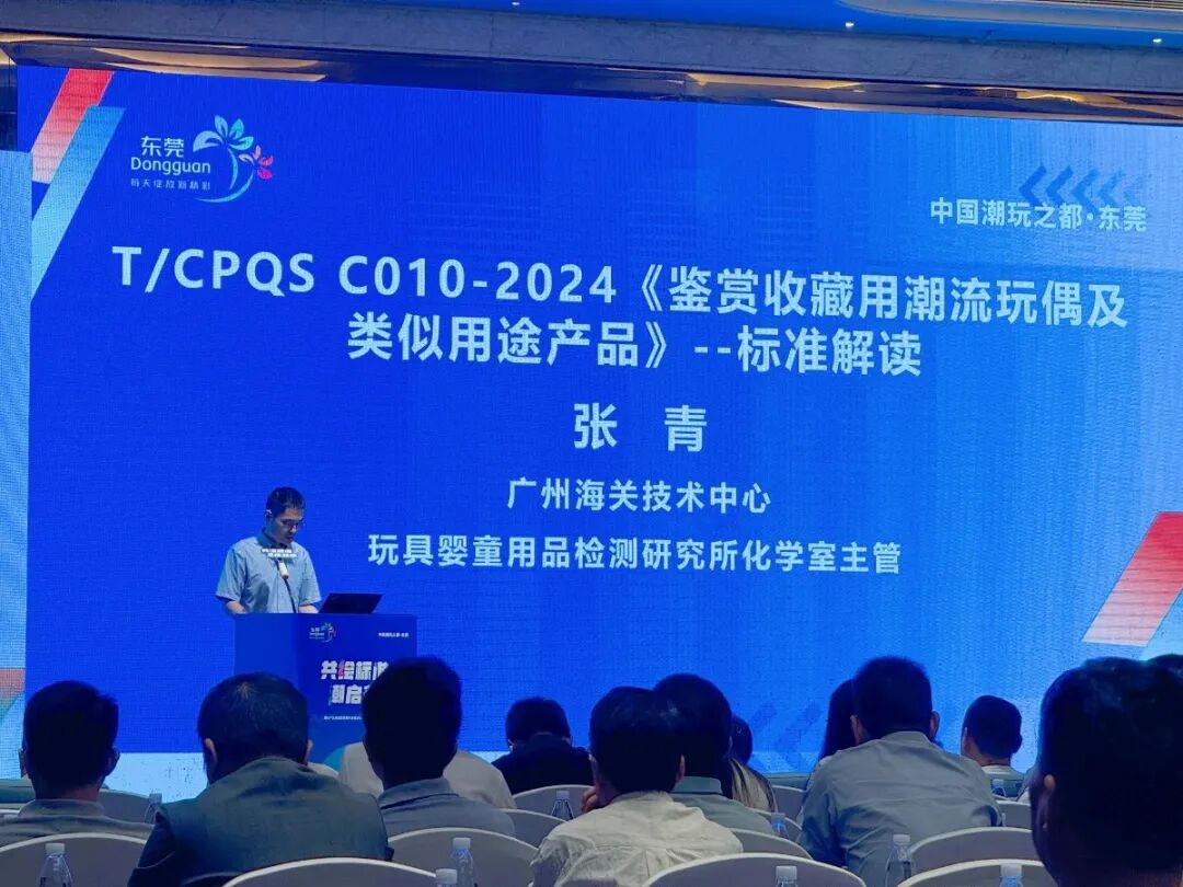 会上,中国消费品质量安全促进会副理事长兼秘书长王昆和东莞市委常委、宣传部部长武一婷分别为大会致辞。接着,由广州海关技术中心玩具婴童用品检测研究所风评室主任霍炜强发布《潮玩及其衍生品系列团体标准》,广州海关技术中心玩具婴童用品检测研究所化学室主管张青宣贯重点标准《鉴赏收藏用潮流玩偶及类似用途产品》(T/CPQS C010—2024),广州海关技术中心玩具婴童用品检测研究所化学室高级工程师欧阳雨宣贯重点标准《鉴赏收藏用潮流玩偶及类似用途产品挥发性有机物(VOC)安全限量及测试方法》(T/CPQS C011—2024)。该系列共计10项团体标准,为国内潮玩产业建立标准体系,进一步规范和提升国内潮玩质量,助力产业出海。