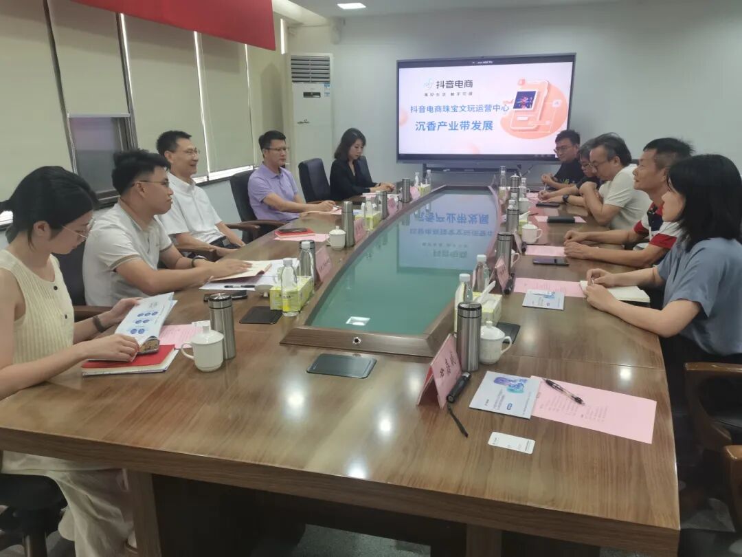 在座谈会上,我会执行会长陈祥祐首先介绍了协会的基本情况,并表示协会始终秉持着“服务会员,服务行业,服务政府”的宗旨和理念,不断地整合资源,凝聚东莞企业的智慧和力量,抱团发展,共同助力潮玩产业发展,并对下一步合作提出了设想。随后,东莞晶桦沉香科技有限公司运营总监陈坤海向大家介绍了抖音电商珠宝文玩东莞运营中心及“中国好沉香”的IP项目。