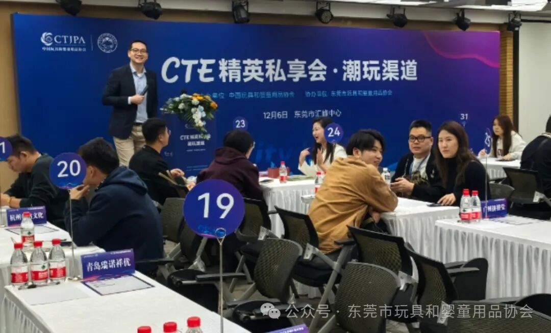 12月6日,由中国玩协授权行业分会主办,我会协办的第 15 期 CLE 生态圈交流对接会和 CTE 精英私享会•潮玩渠道在东莞顺利举行。本次活动,头部版权方及代理商高层与东莞地区潮玩、服装、食品等行业被授权商代表进行深度洽谈对接,共同促进 IP 赋能被授权行业高质量发展。本次活动得到中共东莞市委宣传部大力支持。