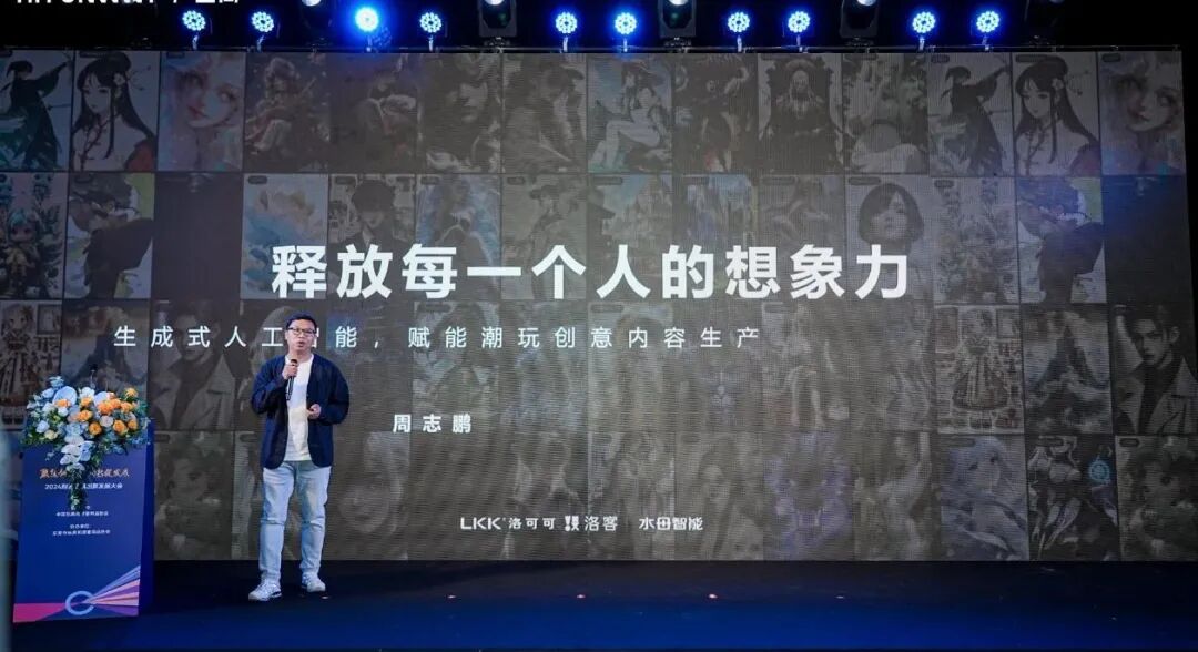 洛可可创新设计集团的周志鹏分享,生成式AI技术正开启创造力与想象力释放的新时代,打破传统创作局限,促进低门槛、高成长性的创作环境。洛可可积极拥抱这一变革,通过AIGC技术重构产业内容,建立新品类品牌IP。他们利用AI的低门槛创作互动,与用户产生更多连接与共鸣,实现文化聚合与主动传播,从而塑造出具有强烈情感共鸣的超级符号。洛可可还展示了其在AI漫画领域的显著成果,包括在日本和中国漫画平台发行的多部AI漫画作品,以及全球市场的广泛布局,这些数据与成就彰显了洛可可在AI创意内容生产领域的领先地位。此外,周志鹏还分享了洛可可如何通过AI技术优化创意产业工作流,降低设计成本,提高创作效率。他呼吁业界同仁共同探索AIGC的无限可能,携手进入一个极大与极小的美好世界,让潮流玩具的创新发展迈向新的高度。