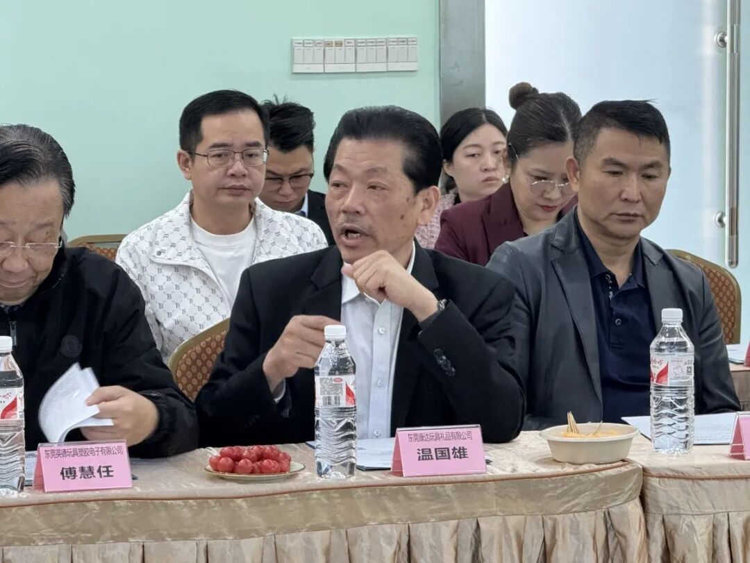 会长温国雄在开场发言中表示当下面临国际形势的不确定性和国内市场消费结构不断变化的压力,很多工厂因为客户关系陆续外迁至东南亚,希望各企业稳中求进,结合协会未来工作方向提出宝贵建议。
