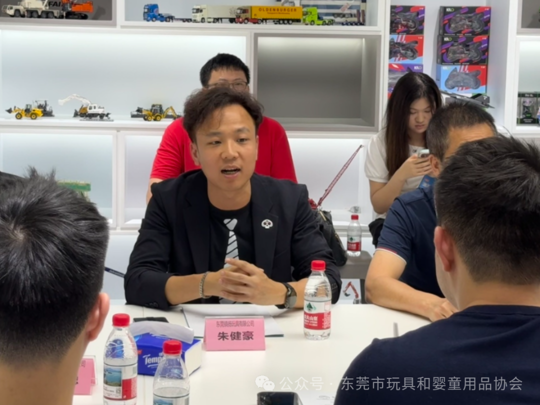 随后,全体参会代表在会议室开展企业交流活动,会议由协会青年委员会理事长、东莞镇扬玩具有限公司董事长朱健豪主持。朱总介绍了活动议程及与会人员,并感谢其钜模型提供的会议场地及接待支持。